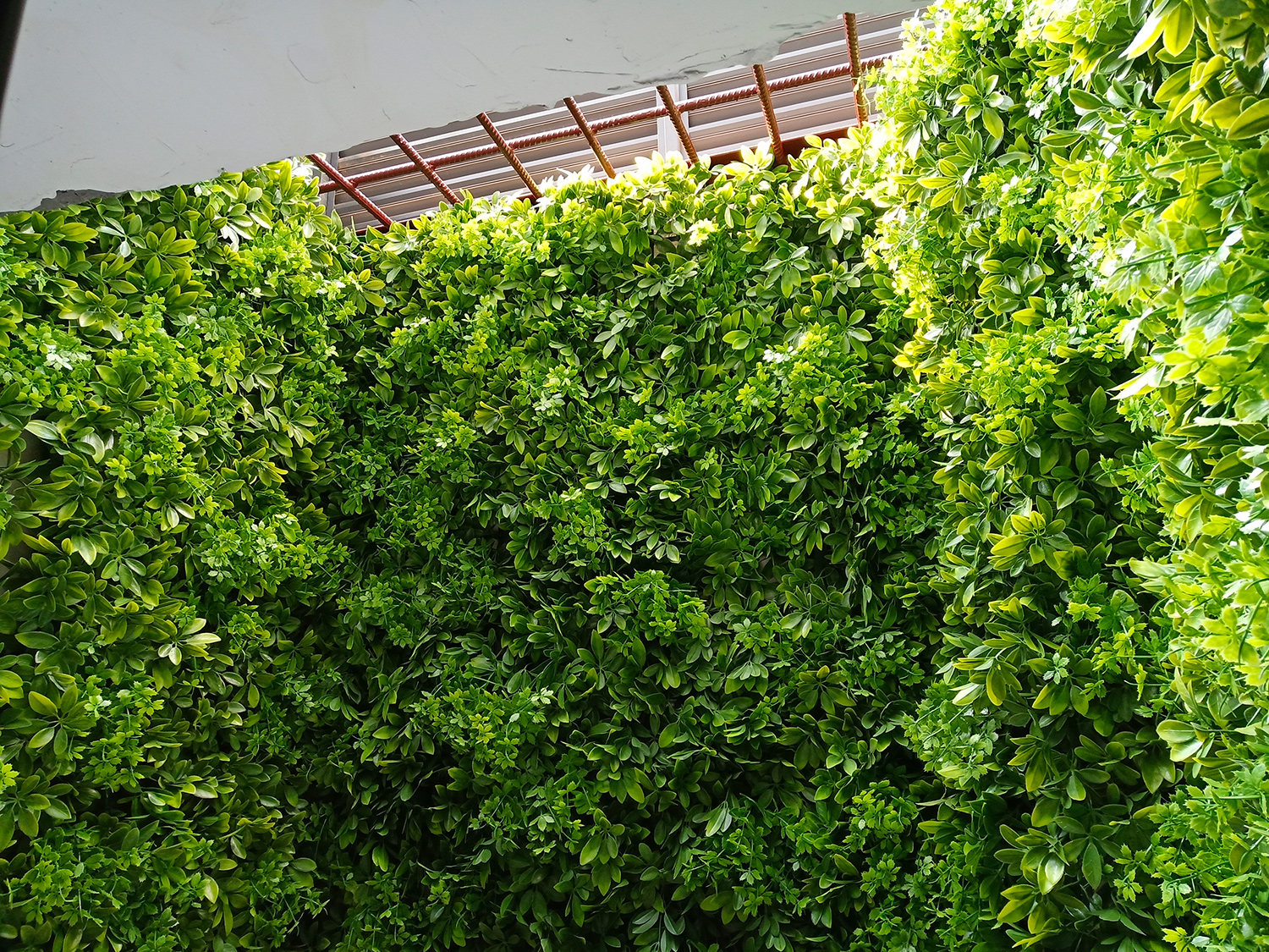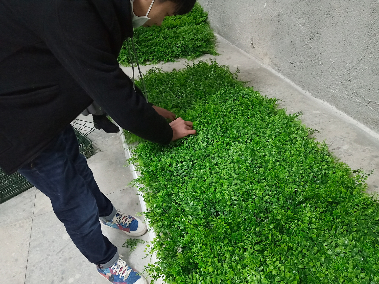 先將小塊的仿真植物墻產(chǎn)品組裝成合適的大小