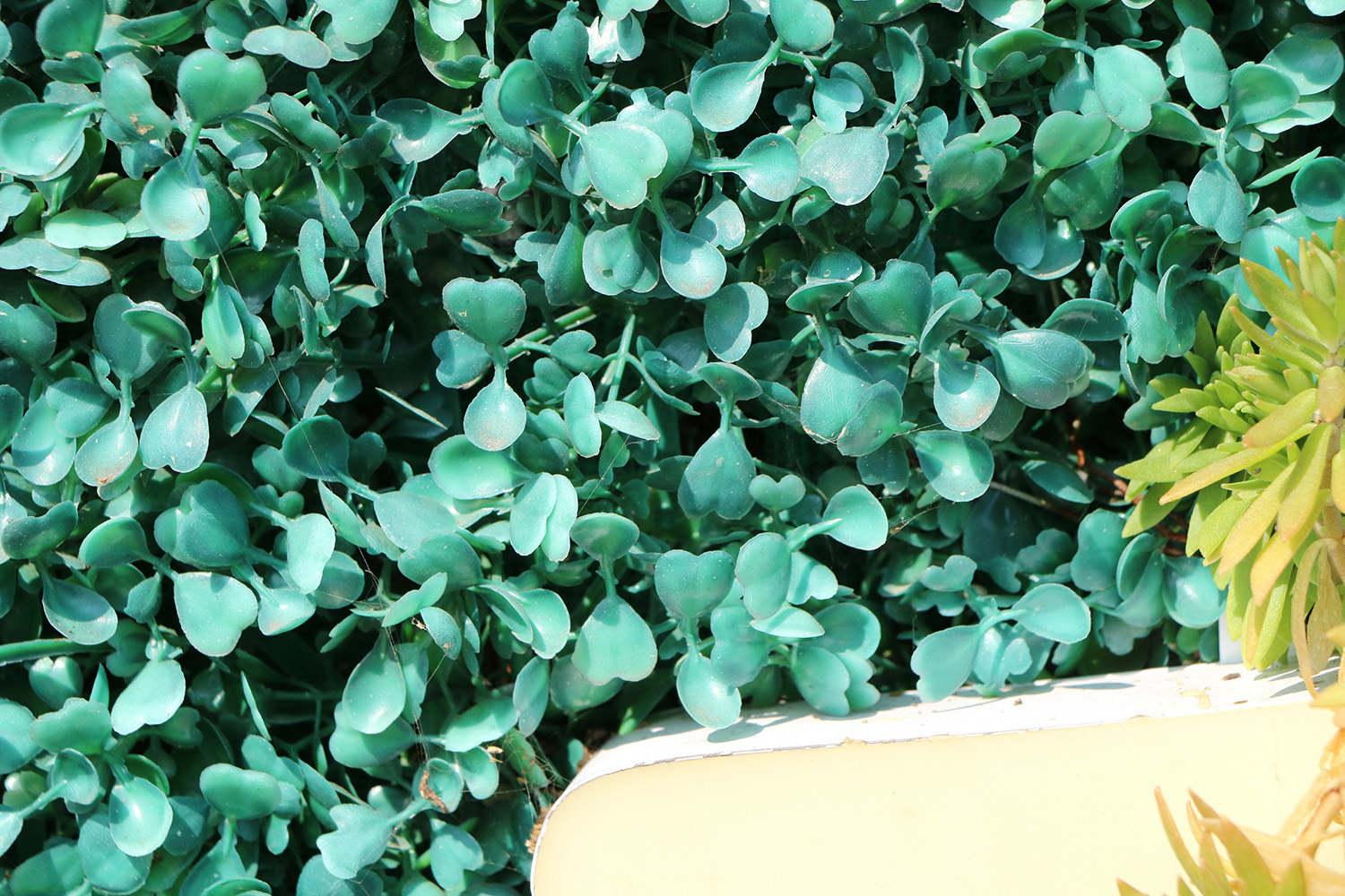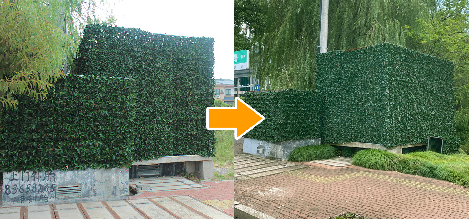 大型變電箱綠植裝飾,歷經(jīng)4年半,色彩沒有明顯變化,葉片也沒有明顯的掉落