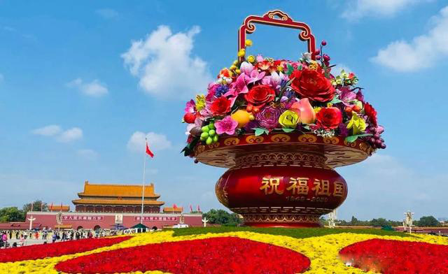 ??2020年國慶臨近,天安門及長安街周邊的各色主題慶典綠雕已經(jīng)出爐,讓我們一睹她的芳容!天安門廣場中心“祝福祖國”巨型花籃.