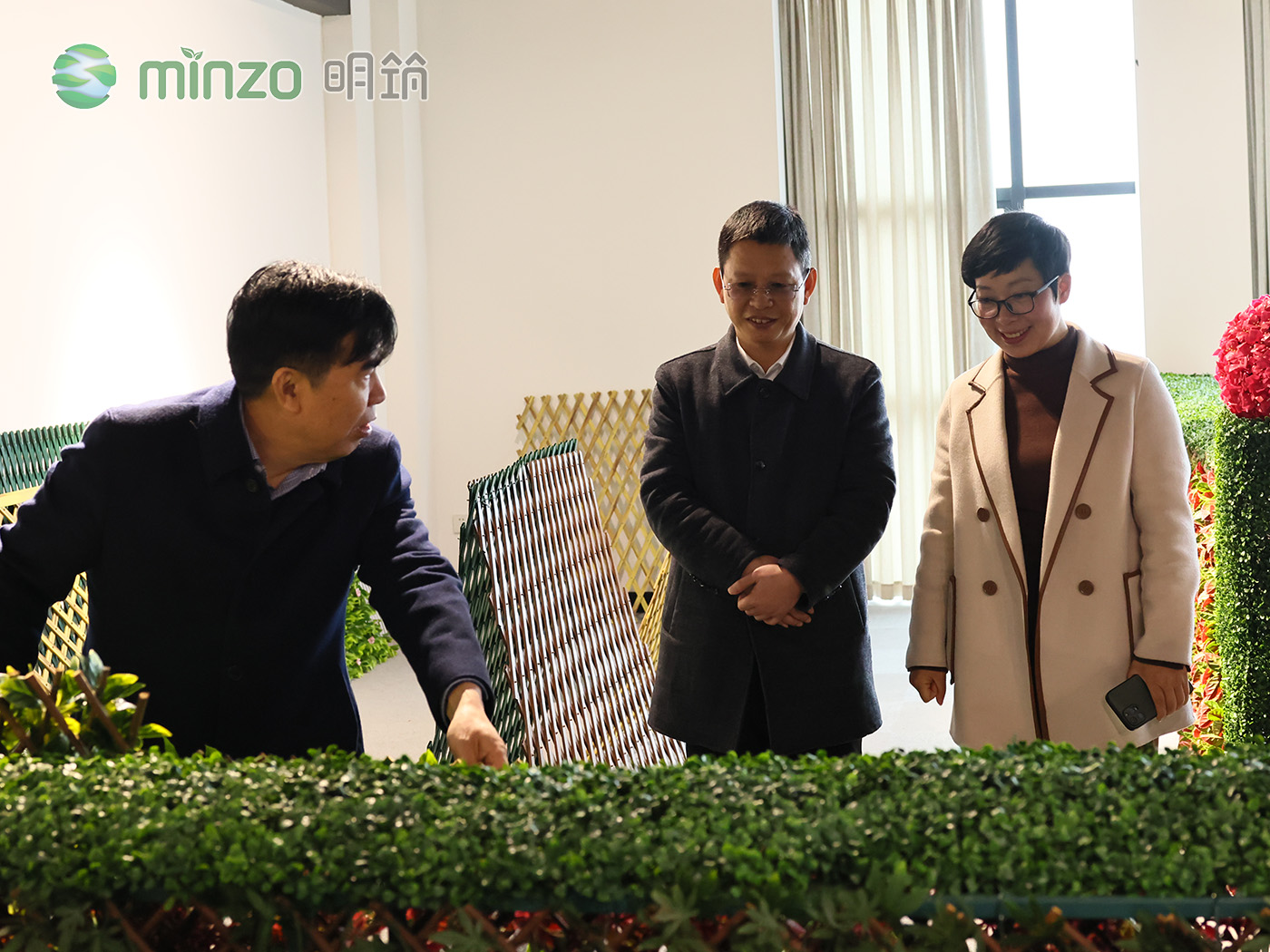 未來(lái)產(chǎn)品的研發(fā)趨勢(shì),李部長(zhǎng)對(duì)豐富的仿真植物款式表示贊嘆。